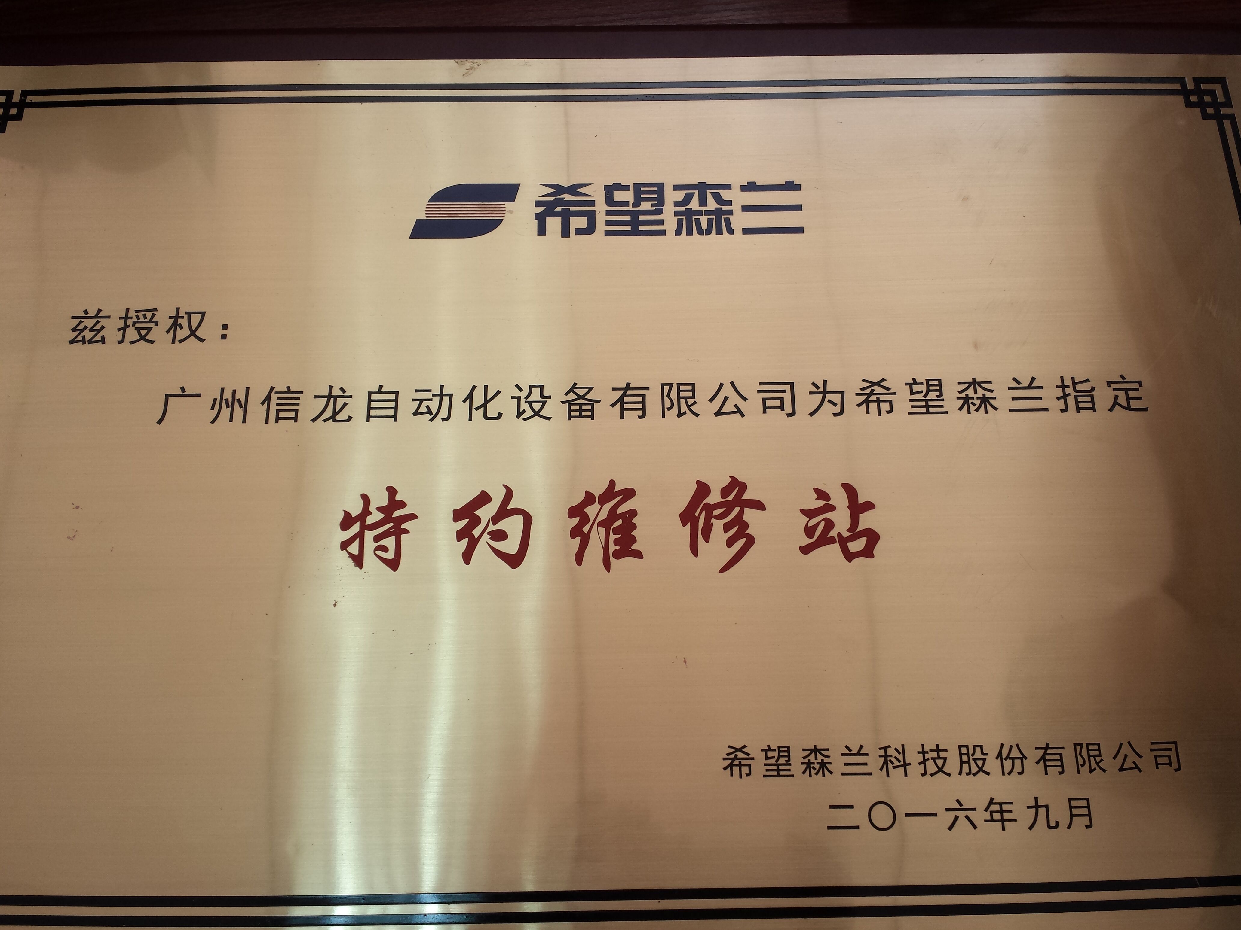 - 【2016-09-16】熱烈祝賀我司成為希望森蘭指定特約維修站